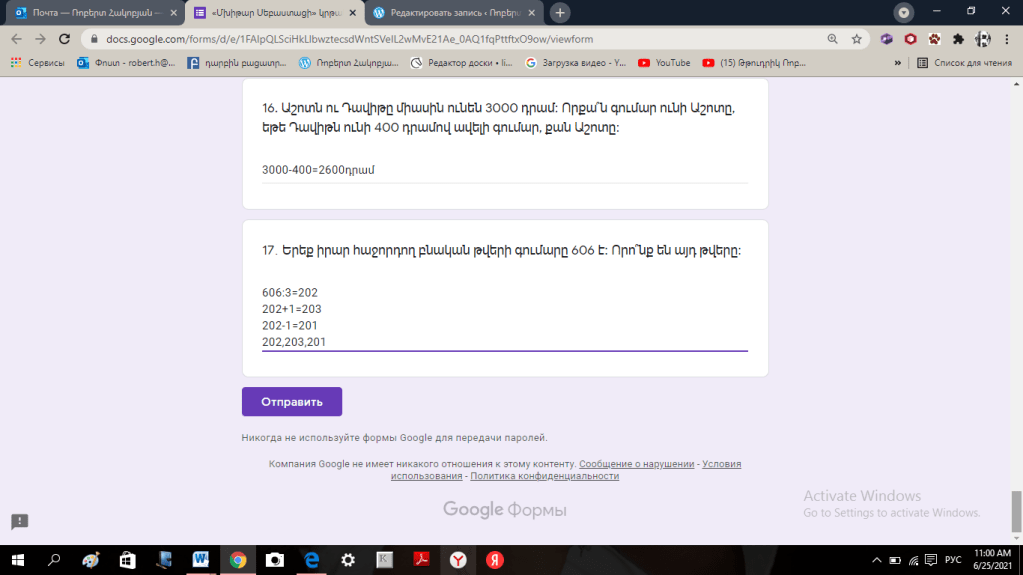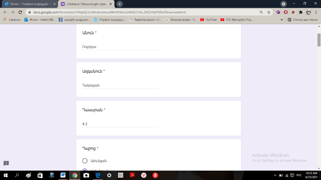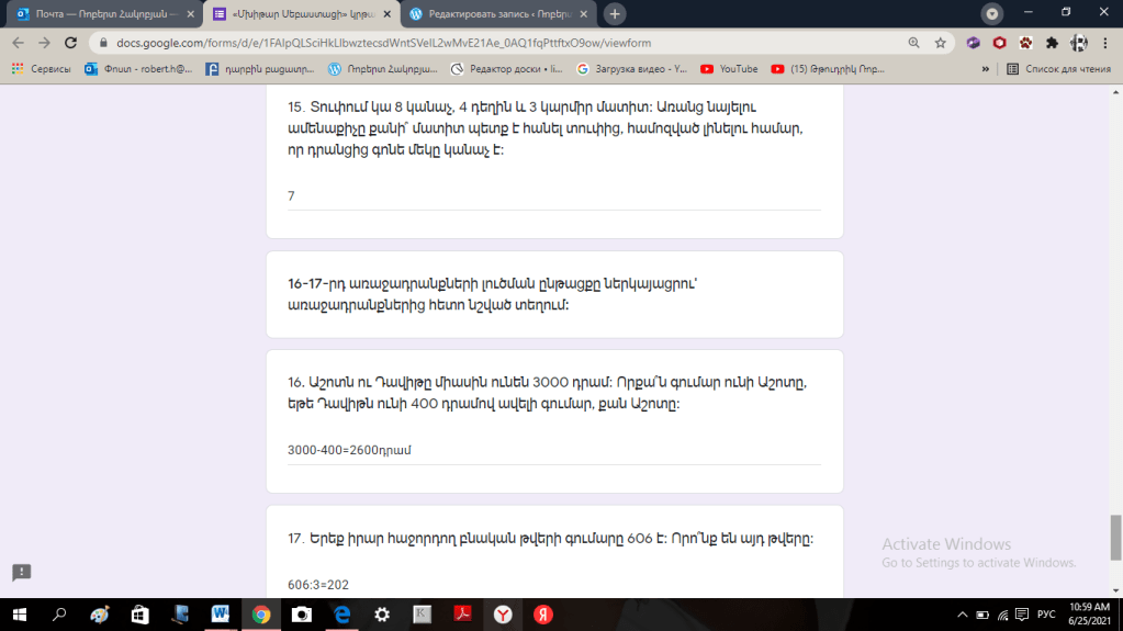 Նորից word ֆայլում նշեցի առաջադրանքը կատարելու սկիզբը և ավարտը։ Գրանցեցի, թե ինչքան ժամանակում կատարեցի առաջադրանքը։