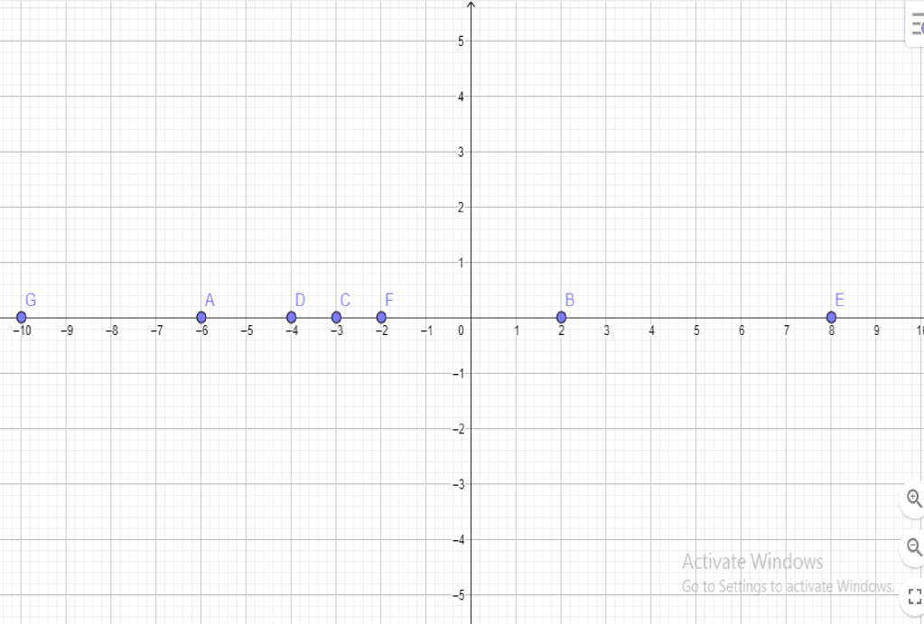 447.Գծե՛ք կոորդինատային ուղիղ և նրա վրա նշե՛ք A (–3), B (+7), C (–6), D (+1), E (+8), F (–5), G (–4) կետերը, եթե միավոր հատվածի երկարությունը սմ է, 1 սմ է։
