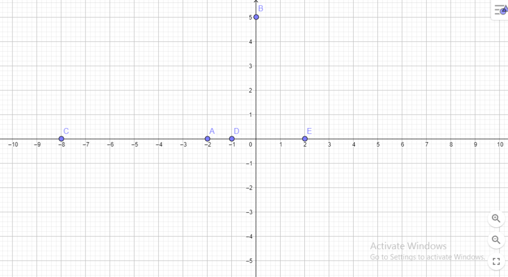 A (–2), B (+5), C (–8), D (–1), E (+2)