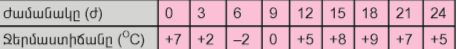 722.Հետևյալ աղյուսակում ներկայացված են օրվա ընթացքում օդի ջերմաստիճանի փոփոխության տվյալները.