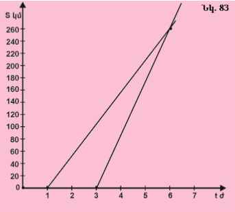 գ) Քաղաքից ի՞նչ հեռավորության վրա էր մեքենան մեկնումից 2, 3, 6 ժամ անց։