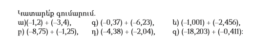 ա(-1,2)+(-3,4)=-4,6 գ)(-0,37)+(-6,23)=-6,60 ե)(-1,001)+(-2,456)=-3,457