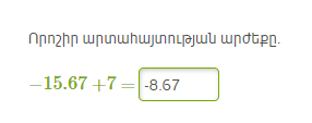 բ)(-8,75)+(-1,25)=-10 դ)(-4,38)+(-2,04)=-6,42 զ)(-18,203)+(-0,411)=-18,614
