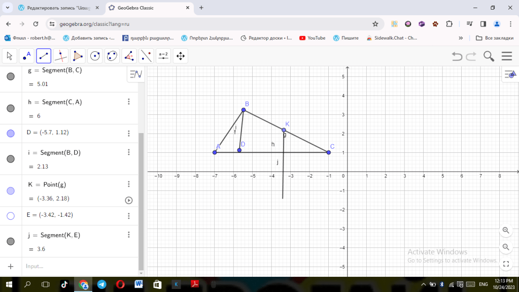 6) Եռանկյան մի կողմը հավասար է 12 սմ, մյուս երկու կողմերի տարբերությունը 4սմ է, իսկ պարագիծը՝ 32սմ է: Գտնել եռանկյան կողմերը: