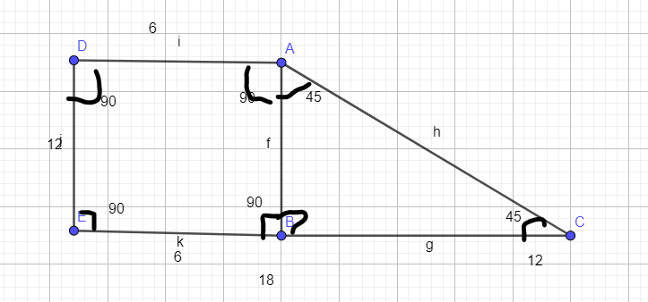 9․ Ուղղանկյուն սեղանի սուր անկյունը 45° է: Փոքր սրունքը 12 սմ է, իսկ մեծ հիմքը՝ 18 սմ: Գտնել սեղանի փոքր հիմքը: